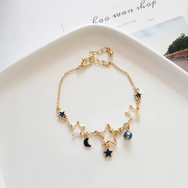 Japan Korea Stern Mond Armband Für Frauen Mädchen Mode Rosa Kristall Perle Kette Armband Großhandel Designer Schmuck Party Geschenk